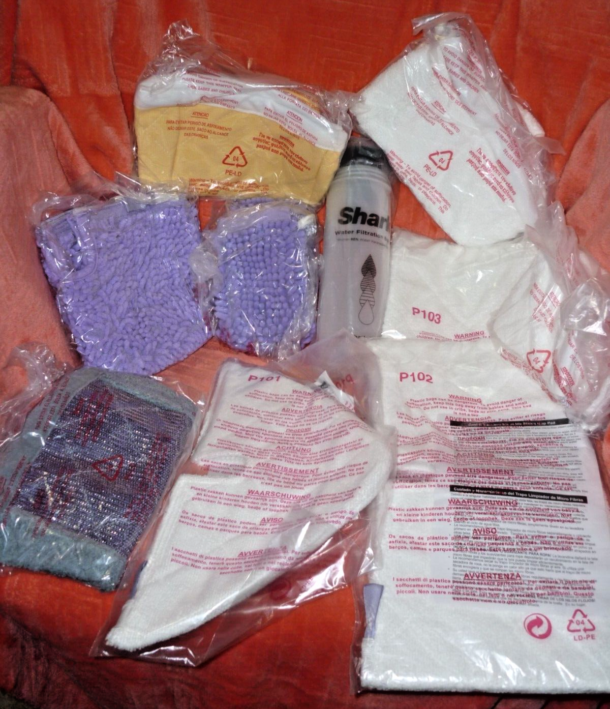 Brand New, Sealed: Shark Steam Cleaner & Mop Accessories: 9 NEW Sealed Pads, 2 NEW Replacemen t Brush Heads and 1 NEW Water Filtration Bottle. I wanted to keep Items Sealed and Untouched, so I don't have precise information on each pad, but some packages are labeled with Model Numbers; Please see Pics for Finer, Close Up Details. From a Smoke Free Home. Please check out my other listings, and feel free to Email with any Questions or Comments! Will Ship Worldwide, however, Postage Outside of the United States will incur an increased Postal Fee. I Ship all my Items Very Quickly and Securely! Thank you!