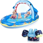 【Double the Fun】 SULIFEEL inflatable pool with two delightful designs to choose from – Rainbow Unicorn or Shark – your kids will dive into a world of imagination and adventure. 【Slide into Joy】Our kiddie pool features an attached slide, adding an extra thrill to every splash. Watch as your children gleefully slide into a pool of laughter and excitement. 【Rainbow Sprinkler Magic】Transform ordinary water play into a magical experience with the rainbow arch that sprays water. It's like having your own mini water park right in your backyard! 【Spacious & Safe】Measuring a generous 8 by 5 ft with a height of 9 feet, with a water capacity of 200 liters, it's perfect for toddlers while spacious enough for three or more little ones to frolic together. 【Quality & Convenience】Crafted from eco-friendly 7P PVC material that is durable, won't fade or warp, and is safe and non-toxic.. Plus, we've included an inflatable pump with every pool for hassle-free setup, ensuring more time for play and less time for preparation.