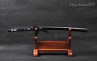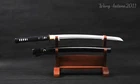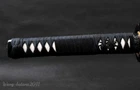 Product Parameter: Number: 835 Swordsmith: 吉久正一 Blade: Damascus folded steel (1095 steel folded 11 times to create 2048 layers), 百炼钢 Overall: 78cm/30.7 inch Blade: 50cm/19.68 inch Handle: 20 cm/7.87 inch Width: 3.2 cm/1.26 inch Thickness: 0.7cm/0.28 inch Bo-hi(blood groove): Yes HRC(Hardness): 58 Tsuba(hand guard): Iron Shape: Shinogidukuri Nakago: Full-tang (2 meguki fix the handle vertically, very firm) Kissaki: medium (chūkissaki) Rayskin: white rayskin It's a functional sword. professionals can use it to cut bamboo,paper, water bottles,etc. Craft: Fully hand folded and forged 1095 high carbon steel by 15 times(32768 layers), traditional hand-polishing, Quenching, etc. Fittings: Brass habaki & seppa+ alloy fuchi & kashira & menuki + black cotton sageo/ito * All the fittings can be replacement. we can customize Katana/Tanto size for you . Unsharpened blades are no problem. * The color and style of sword bag is random. If you want a specific style ,please contact us . * The sword stand is not include . Tsuba & Fuchi & Kashira & Habaki Saya Additional Service About us Delivery details Tsuba & Fuchi & Kashira & Habaki Alloy Tsuba Iron Tsuba ( extra $10) Brass Set ( extral $50 ) Alloy Fuchi & Kashira Habaki TSUKA-ITO & SAGEO Tsuka-ito is the wrapping of the tsuka and sageo (下緒 or 下げ緒) is a hanging cord that is passed through the hole in the kurigata (栗形) of a Japanese sword's saya. SAMEGAWA Samegawa(鮫皮)is the ray or shark skin wrapping of the tsuka (handle/hilt). Saya Please contact us before placing an order to see if there is any stock available, as well as any additional charges. OX Horn Saya Additional Service It's free for engraving English words, Chinese Characters and Japanese Kanji , etc. You need pay extral $20-30 for engraving patterns. Hamon We can add or remove the machine-made wavy hamon for free. Bo-hi ( Blood Groove) Usually thought be used for bloodletting only. It is also used to lighten the weight of the sword. We can add or remove Bo-hi for free Sharpness Most of our blades are sharp. We can also make the blade unsharpened for free if you require. Colored Blade If you want to change to a different color blade, please contact us before purchase. Matching Swords Set If you buy one katana, we can make a matching Wakizashi or Tanto for you. The price varies from different swords. Please contact us if you need make custom matching set. About us We have our own sword-casting factory. The factory is located in Longquan, a small town with a long history of sword-casting in China. Most of the famous Swords in China are made there. Rich raw materials, skilled technology, traditional sword casting technology from generation to generation. Manual production really takes a lot of time. We will prepare most products in advance ,and arrange delivery within about a week. However, sometimes the delivery time is delayed due to weather or raw materials,etc. we hope to get your understanding. Feel free to contact us to inquire about the status of your order. Each handmade sword is unique. Our swords are great for gifts or for your own collection. Our swordsmithing master makes every sword attentively, hope you can feel our sincerity. We will also give you the best customer service, any questions please feel free to contact us. Delivery details a) Import duties, taxes and charges are not included in the item price or shipping charges . These charges are the buyer’s responsibility. b) If you do not receive the package, or the package is damaged during transportation. We'll take care of it. Please feel free to buy. c) If it is mentioned in the product description that the package includes the sword bag or sword holder , the style will be random. The sword holder or sword bag on the ebay picture is the props we use for shooting. If you really like a style, please contact us before buying. d) If you have any problem after recieve the package (wrong size, wrong style, etc.). We always provide you with the best after-sales service. Please give us a chance to help you before you give us a bad feedback . Thank you very much!