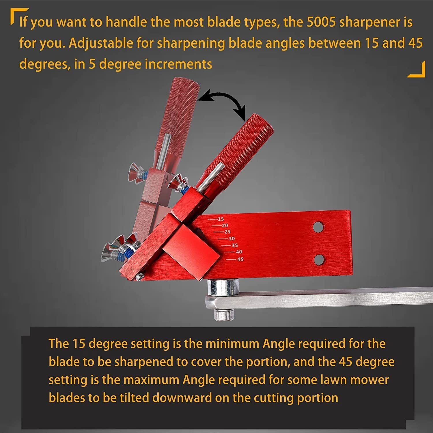 Sharpener Model 5005 Lawn Mower Blade For Straight Standard 15°-45° Adjustable Model 5005 Lawn Mower Blade Sharpener – 15°-45° Adjustable Angle Grinder Attachment Universal Fit for 7-14cm Blades | Left/Right-Hand Blade Compatible | Portable Benchtop Design | Rust-Resistant Iron Construction Professional-grade lawn mower blade sharpener with adjustable angles, designed to restore cutting performance and extend blade life for all standard straight lawn mower blades. 1. Core Technical Specifications Parameter Detailed Information Condition 100% Brand New Model 5005 Lawn Mower Blade Sharpener Material High-quality iron metal (rust-resistant) Adjustable Angle Range 15° to 45° in 5° increments Compatible Blade Size Most 7-14cm (2.75"-5.5") wide lawn mower blades Blade Compatibility Works with both left-hand and right-hand cutting blades Mounting Options Benchtop mounting or vice-mounted for stability Power Source Compatible with cordless grinders (grinder not included) Warranty 3 months Important Fitment Note Not suitable for blades with 4-inch wide circular center hubs 2. Key Features & Performance Advantages 🔹 Precision Angle Adjustment (15°-45° in 5° Increments) Easily adjust and lock the sharpening angle between 15° and 45° in precise 5° increments, allowing you to match the exact factory bevel angle of your lawn mower blade. This ensures a perfect, consistent edge every time, maximizing cutting efficiency and preventing uneven grass cutting. 🔹 Durable Rust-Resistant Iron Construction Crafted from high-quality iron metal with rust-resistant treatment, this sharpener is built to withstand regular use and harsh outdoor conditions. The robust construction prevents premature wear, corrosion, and failure, ensuring long-lasting performance season after season. 🔹 Universal Compatibility for Most Lawn Mower Blades Designed to sharpen both left-hand and right-hand cutting blades, making it suitable for nearly all standard straight lawn mower blades from popular brands. Works with blades 7-14cm wide, covering most residential and commercial lawn mower models. 🔹 Portable & Versatile Design Lightweight and completely portable when used with a cordless grinder. Can be securely mounted to a benchtop or held in a vice for stable sharpening, or easily removed from the mounting bracket for convenient storage when not in use. Perfect for use in workshops, garages, or on-site at job locations. 🔹 Restores Peak Cutting Performance Dull mower blades tear grass instead of cutting it cleanly, leading to brown, unhealthy lawns and increased fuel consumption. This sharpener quickly restores a sharp, precise edge to your blades, ensuring clean cuts that promote healthier grass growth and improve mowing efficiency. 3. Application Compatibility This Model 5005 lawn mower blade sharpener is compatible with: Residential Lawn Mowers : Walk-behind mowers, riding mowers, and zero-turn mowers with standard straight blades Commercial Mowers : Professional-grade lawn care equipment with 7-14cm wide blades Blade Types : Both left-hand and right-hand cutting blades (standard straight designs) Power Equipment : Compatible with most cordless angle grinders (grinder not included) Important Fitment Note : This sharpener is NOT suitable for blades with 4-inch wide circular center hubs. Please check your blade dimensions before purchase to ensure compatibility. 4. Package Contents 1 × Model 5005 Lawn Mower Blade Sharpener Mounting bracket and hardware for benchtop/vice installation 5. Usage Instructions & Important Notes Step-by-Step Sharpening Guide Securely mount the sharpener to a workbench or hold it firmly in a vice for stability. Adjust the angle to match your mower blade's factory bevel (typically 25°-30° for most residential mowers). Lock the angle in place using the adjustment lever. Position your lawn mower blade in the sharpener, ensuring it sits flat against the angle guide. Use a cordless grinder (not included) to carefully sharpen the blade along the bevel, maintaining consistent pressure and motion. Repeat for the opposite side of the blade (for double-sided cutting blades). Balance the sharpened blade before reinstalling to prevent vibration and extend mower life. Additional Notes Always wear appropriate safety gear (gloves, eye protection) when operating power tools and sharpening blades. Contact us first if you encounter fitment, quality, or performance issues – we will resolve your concerns promptly. Please reach out before leaving neutral/negative feedback; we will provide satisfactory solutions to meet your needs. Check your blade dimensions and center hub size before purchase to ensure compatibility with this sharpener.
