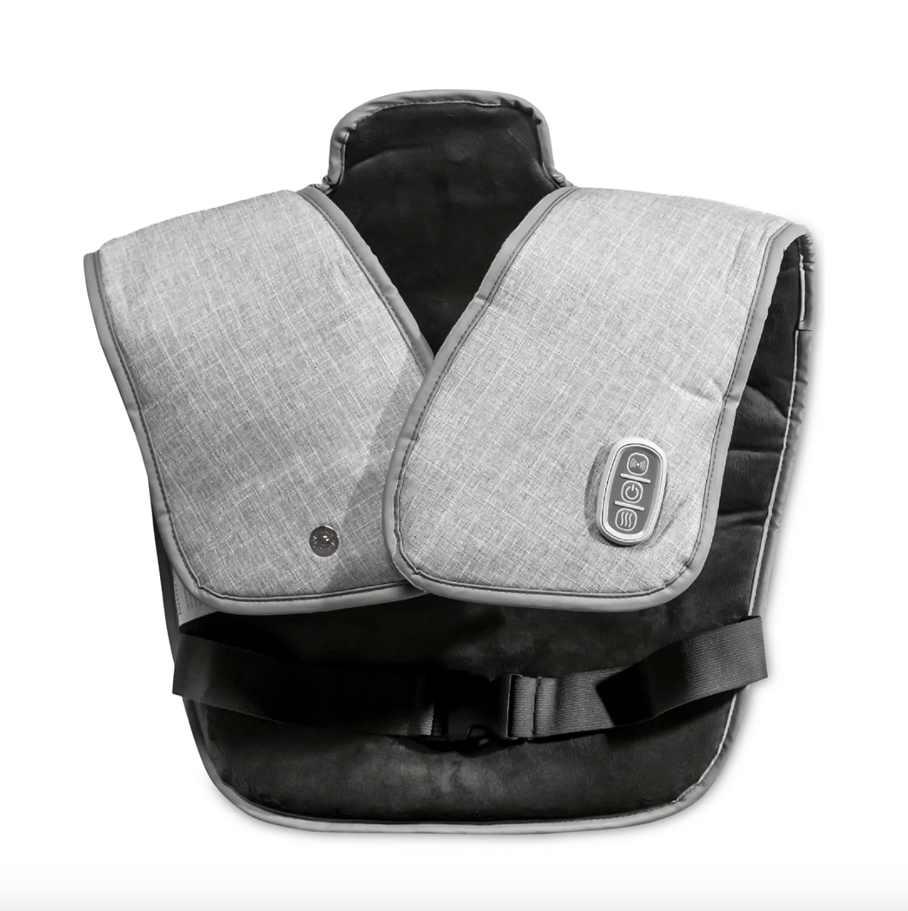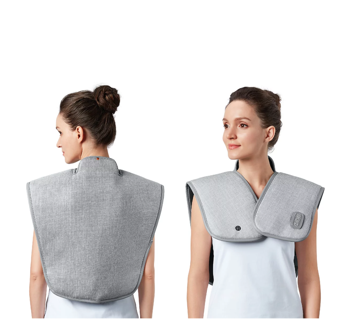 Relax your body, make life healthier and happier by adding Sharper Image Heated Neck and Shoulder Massager Wrap into your weekly routine! It's designed to apply deep-invigorating thermal care while providing a soothing massage onto your sore muscles and improve blood circulation. Features: Five massage modes Contours to neck and shoulders for comfortable, hands-free fit Plush, quilted fabric 30-minute auto off AC adapter included Approx. weight: 2.1 lbs. Approx. dimensions: 18"L x 8"W x 5"H. Polyester/plastic Spot clean only Imported