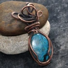 Shattuckite Ethnic Copper Wire-Wrapped Pendant Jewelry Size 2.7" JW