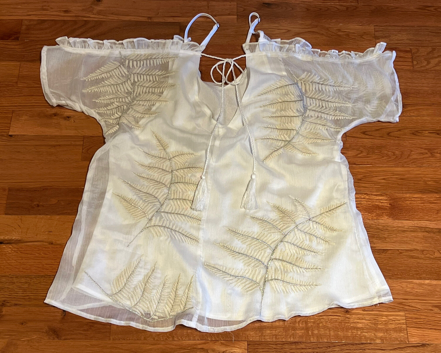 Buckle Gimmicks Sheer Ivory Blouse Cold Shoulder Leaf Embroidery Layered XS. Condition is New with tags. Shipped with USPS Ground Advantage.