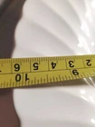 This vintage dinner plate from Sheffield is a must-have for collectors of mid-century modern dinnerware. With its round shape and white color, it is perfect for all occasions and will add a decorative touch to your table settings. Made of fine bone china, this plate has a diameter of 10 inches and is stackable for easy storage. Featuring a printed backstamp and manufactured in the United States, this plate is a true vintage gem. Its unique features, including its stackability and vintage pattern, make it a standout piece in any collection. Add this Sheffield bone white dinner plate to your collection today!