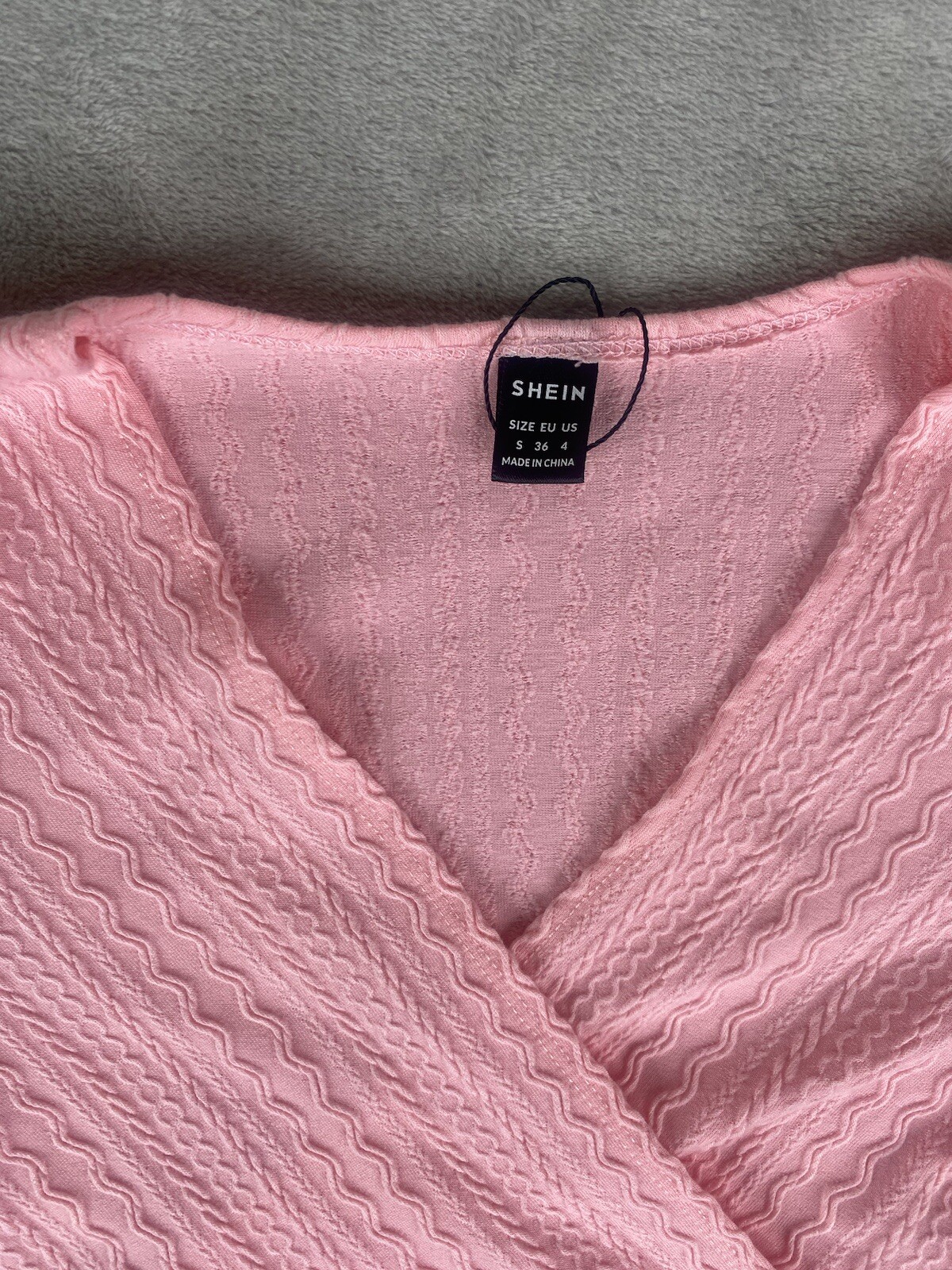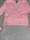 Shein Pink ballet ballerina style wrap long sleeve crop top ribbed stretch small. Condition is Pre-owned. Shipped with USPS Ground Advantage.