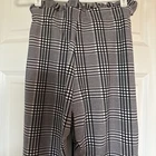 These Shein Women's Plaid Pull-On Pants in size medium feature a trendy ruffled waist and a preppy casual style. The high-rise, straight-leg pants are made of a comfortable polyester and spandex blend with an elastic waist for easy wear. Perfect for the summer, fall, and spring seasons, these black, gray, and white pants are designed for a regular fit and can be hand washed for care. Ideal for a casual occasion, these dress pants with a flat front and belted waist are a fashionable and versatile addition to any woman's wardrobe.