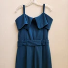 Occasion: Party/Cocktail, Wedding Features: Belted, Stretch Size: 14 Inseam: 28 3/4 in Sleeve Length: Sleeveless Material: Polyester, Spandex Garment Care: Machine Washable Fit: Regular Country of Origin: China Color: Teal Set Includes: Belt Brand: Shelby & Palmer Closure: Zip Size Type: Regular Leg Style: Flared Style: Jumpsuit Seller Notes: “Color Shade Varies, More of a Greenish Tint. Measurements in Photos. In Very Good Condition” Type: One-Piece Number of Pieces: 1 Piece Fabric Type: Rayon Pattern: Solid Accents: Zipper Department: Women