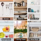 Shelf liners Drawer Protection: The kitchen cabinet liner can not only protects shelves and drawers from wear and tear, but also protect refrigerator shelves from being slimy, greasy and other unwanted dirt and debris Reducing Slipping:This clear shelf liner is textured on 2 sides,on one side it can prevent fragile items from slipping,on the other side it can grip the shelves well compared with other plastic liners which are only textured on one side Soft and Reusable: The drawer liner is made of high quality material which is durable enough to reuse. Plus the texture is soft so it doesn't curl up as frequently as other harder ones Easy Install and Wash: Easily triming the liner with a household scissor then simply place it down in your drawer. For washing, just remove the drawer mat and wash it with water and put it back when it is dry Multiple Use: The plastic shelf liner can be used in your kitchen cabinets, pantry, work station, laundry room, office space and shoes rack.It is perfect for organizing your space and home