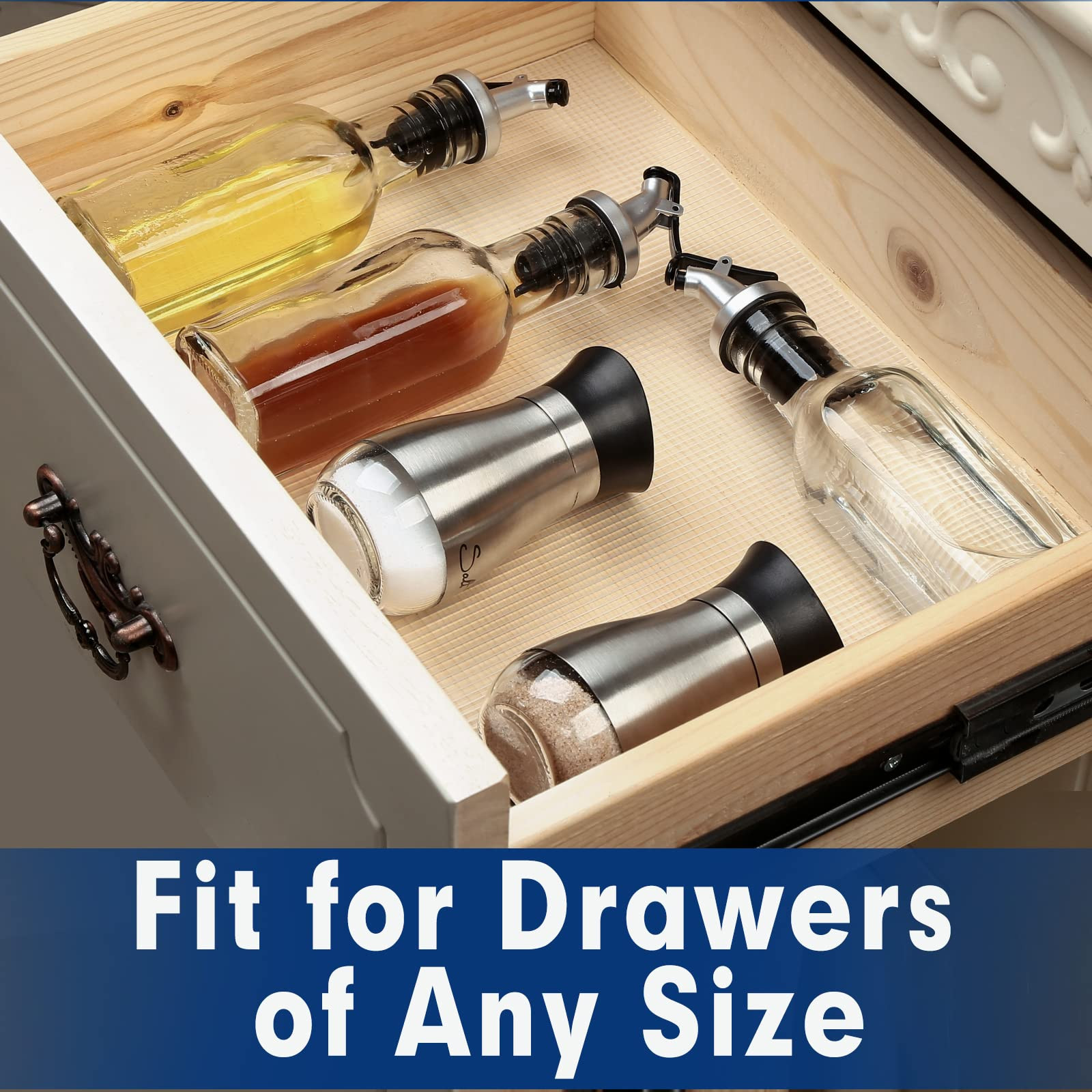 [Grip Non-Slip Design] Our shelf liners feature a strong, textured grip that effectively prevents slipping and bunching in drawers, cabinet shelves, and wire shelving, ensuring everything stays organized and in place. [Premium Protection for Your Drawers] These thickened drawer liners provide superior protection against wear and tear, safeguarding your storage shelves and cabinets. They are 100% waterproof, guarding against spills, grease, water, oil, and unwanted dirt or debris. [Easy Installation] Tailor the cabinet liners to your specific measurements and shapes with ease using a simple pair of scissors. Once trimmed, place them in your drawer for instant effectiveness. Cleaning is a breeze - no need to remove the liner, simply wipe it clean. [Non Adhesive] Crafted from safe, high-quality, food-graded EVA materials, our refrigerator liners are non-adhesive, allowing for easy removal and reusability. Unlike other liners, they maintain their soft texture without ripping or curling. [Versatile Use] With a generous size of 12 inches by 20 feet, these clear liners find utility in various spaces like kitchen cabinets, pantry, workstations, laundry rooms, office spaces, shoe racks, and bathrooms, providing an ideal solution for your organization needs.