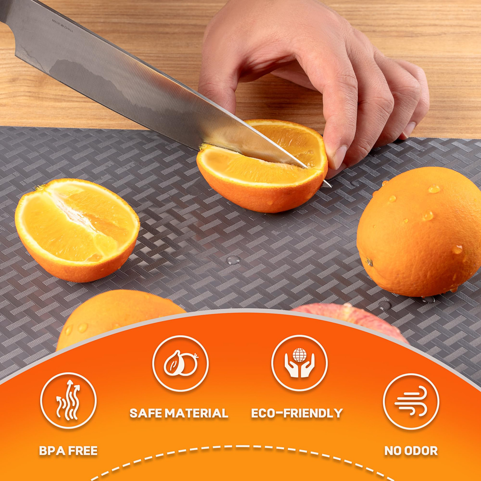 [Safe Material for Food Contact]: Our shelf liner is made from high-quality EVA material that is safe to come in contact with food. You can confidently use it to line your kitchen cabinets without worrying about any harmful effects. [Easy to Cut and Clean]: Our shelf liner is designed for your convenience. It can be easily cut to fit any size of cabinet or drawer. Additionally, it is easy to clean, allowing you to maintain a hygienic environment in your kitchen effortlessly. [Non-Adhesive and Reversible]: Unlike traditional liners, our shelf liner does not require adhesive for installation. It simply stays in place due to its non-slip design. Moreover, it is reversible, allowing you to use both sides for extended use and versatility. [Slip-Resistant and Waterproof]: Our shelf liner is specially engineered to prevent slipping and sliding of items stored in your cabinets or drawers. With its non-slip surface, it provides excellent grip and stability. Additionally, it is waterproof, ensuring that any spills or leaks won't damage the surface underneath. [Versatile Protection]: Our shelf liner can be used not only in kitchen cabinets but also in drawers, cupboards, and cabinets throughout your home. It offers reliable protection against scratches, stains, and moisture, keeping your belongings and surfaces in pristine condition.