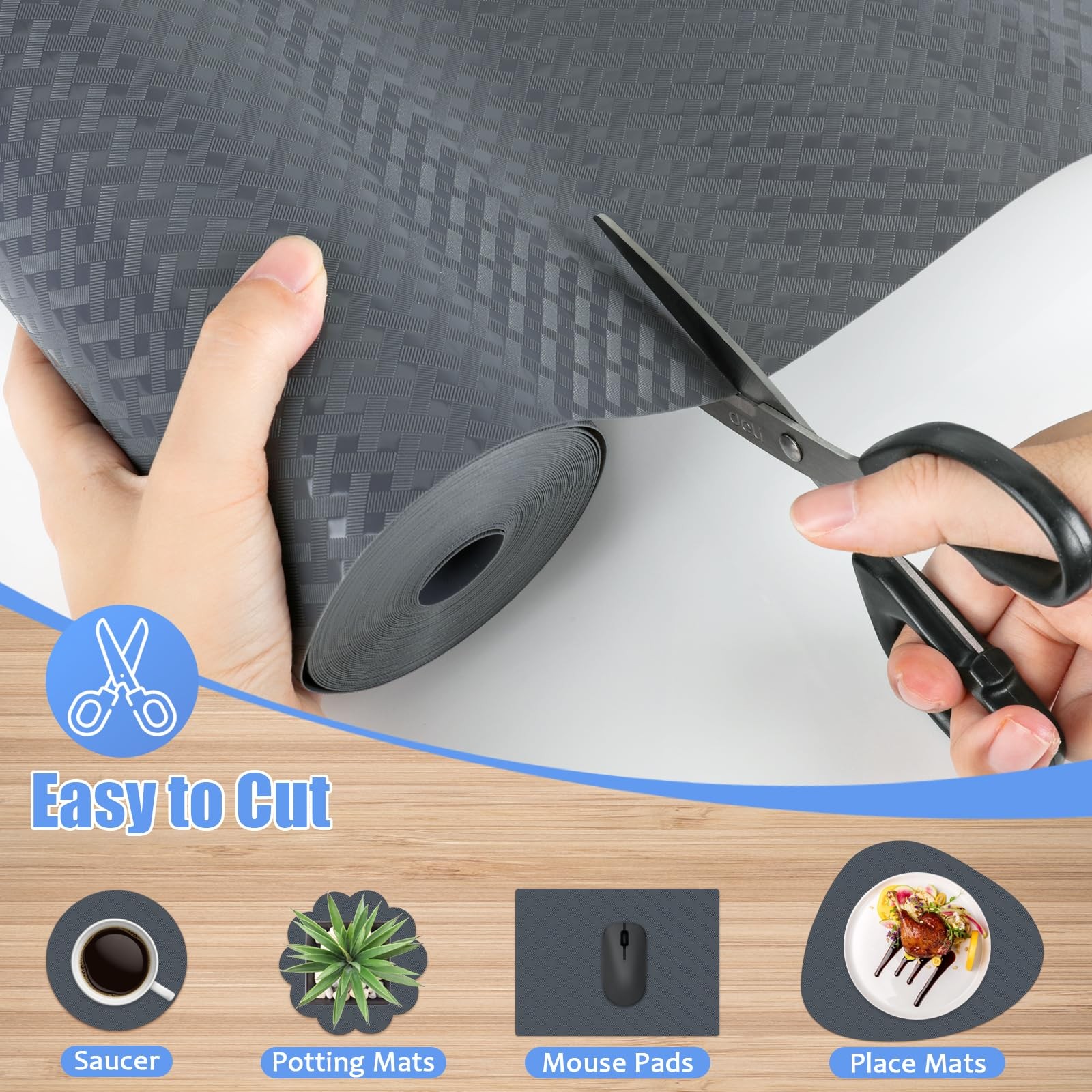 Shelf Liner,Drawer Liner,Shelf Liners for Kitchen Cabinets Non-adhesive,Easy Non Slip Drawer & Shelf Liners for Shelves,Refrigerator,Wire Shelving and Bathroom 12IN x 30FT 【Premium Material】The shelf liner is made of BPA free and odor free EVA material, high quality and reusable. The shelf liners can directly fruits and vegetables, as well as protect shelves, drawers, cabinets and refrigerators from abrasion, tearing. 【Easy to Clean】The kitchen shelf liner is waterproof and oil-proof if the shelf liner is covered with grease, you can rinse it with soapy water or easily wipe the dirt with a damp cloth and sponge, dry it, and use it, keeping the drawers and dividers clean and hygienic for you at all times. 【Non-Slip】The back of the drawer liner is a smooth non-sticky surface, which will not leave residual glue, easy to disassemble and replace. The other side of the surface is a point-like bump design, with an anti-slip characteristic, when you pull and close the drawer, you can prevent the drawer items from sliding, protecting your item's safety. 【Multifunctional Liner】The shelf liners can not only be used as a kitchen liner to ensure the clean of the home, but also as a refrigerator mat to keep food and fruits fresh. Various Usage: Cabinet mat, drawer mat, desk mat, table mat, shelf liner, countertop. 【DIY Size】Multiple pre-cut sizes of cabinet liners fit most cabinets, easy to operate, with just scissors or a hobby knife, you can easily cut the ideal size or cut into various patterns at will to decorate your home or office!