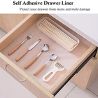 PREMIUM MATERIAL - Adhesive cabinet shelf liners made of high quality food grade EVA material, BPA free.High-quality materials provide you with a safer and healthier choice. With the textured tiny circles overtime it remains easy to wipe clean for high use drawers and food shelves. ADHESIVE & NON SLIP - If you like stick-on varieties, so this is the perfect solution. Textured design to increase friction for helping prevent dishware and other fragile items from moving in your drawers and shelves. Powerful grip on any smooth surface. WATERPROOF & EASY TO CLEAN - The circle textured pattern can hold back small spills or smears, keeping them from spreading. Just wipe with a rag when something spills. The clean and simples design of the lining is neutral and easily integrates with just about any space without undermining whatever look you're going for; that includes the open-shelving that many people like these days. MULTIPLE PURPOSE - Can be used in the fridge in the pantry bathroom bedroom Kitchen drawers,cabinet,shelf,laundry room etc. Easy to cut and install, easy to change your mind and put it somewhere else. See-through, easy to work with a neutral. Protects your drawers and shelves from water/stains. Circle textured patternso things won’t slip all over it. WORRY-FREE AFTER-SALES SERVICE - Food grade material,durable&reusable. If for any reason our shelf liner mats don’t meet your needs, Pls feel free team. We promise will try my best to help you out in 24 hours!