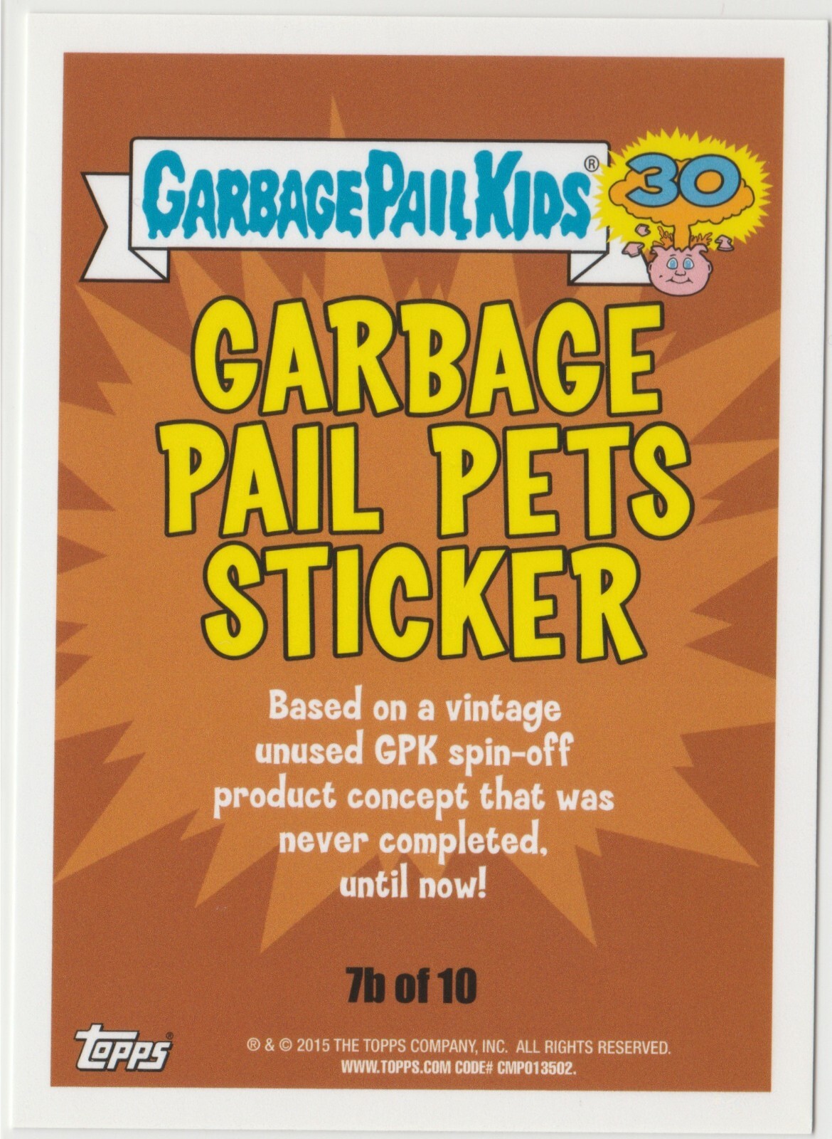 Shelly Serpent #7b of 10 Topps Garbage Pail Kids GPK 2015 30th Anniversary Series Garbage Pail Pets Sticker subset personal stock photos centering of card may vary compared to listed images
