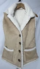Sherpa Vest Small Faux Shearling Suede Fleece Pockets Button Front Natural Beige Bust 38”, Length 28” Fleece has stitching separation at shoulder. Faux suede is not separated. Please review images.