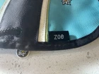 This Sherpani Zoe crossbody bag is perfect for any occasion, whether you're traveling, running errands, or going to work. The bag has a teal blue brown creme/green exterior with an embroidered daisy accent, brown cord crossbody strap, and brown hardware. It has a zip closure and measures 6.25 inches in width, 4.5 inches in height, and 1.5 inches in depth. The bag is made of nylon and has a matte finish. It features a colorful solid pattern and is adorned with applique, zipper, embroidered, and stitching accents. The bag also comes with a coin purse and has a strap drop of 26 inches. This crossbody bag is a great addition to any wardrobe and is sure to become your go-to accessory. In excellent condition and from a smoke-free home.