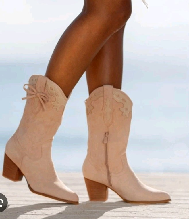 Absolutely love these boots! Wore them once and they’re already a favorite—super comfortable with just the right heel height. The embroidered details and beige suede give them a chic yet rustic vibe, perfect for dressing up or keeping it casual. The side zip makes them easy to slip on, and the quality feels great for the price. A stylish, versatile pick that’ll get tons of wear! Buy responsibly.