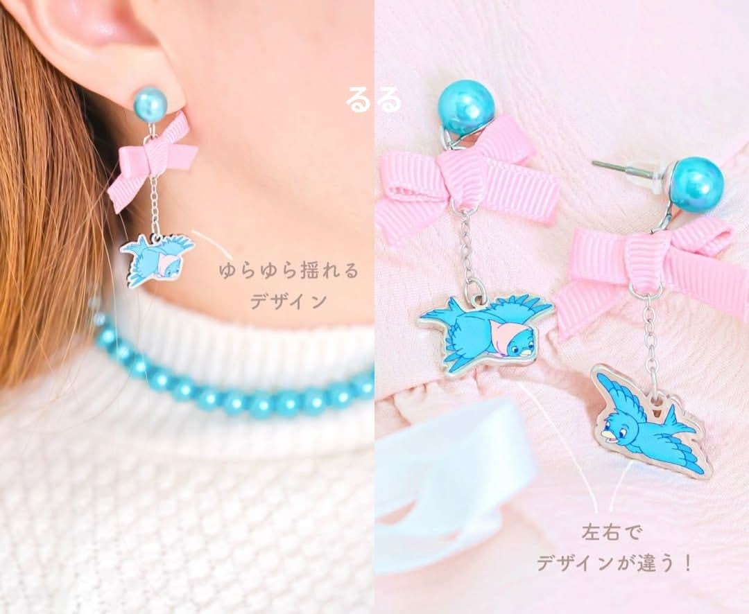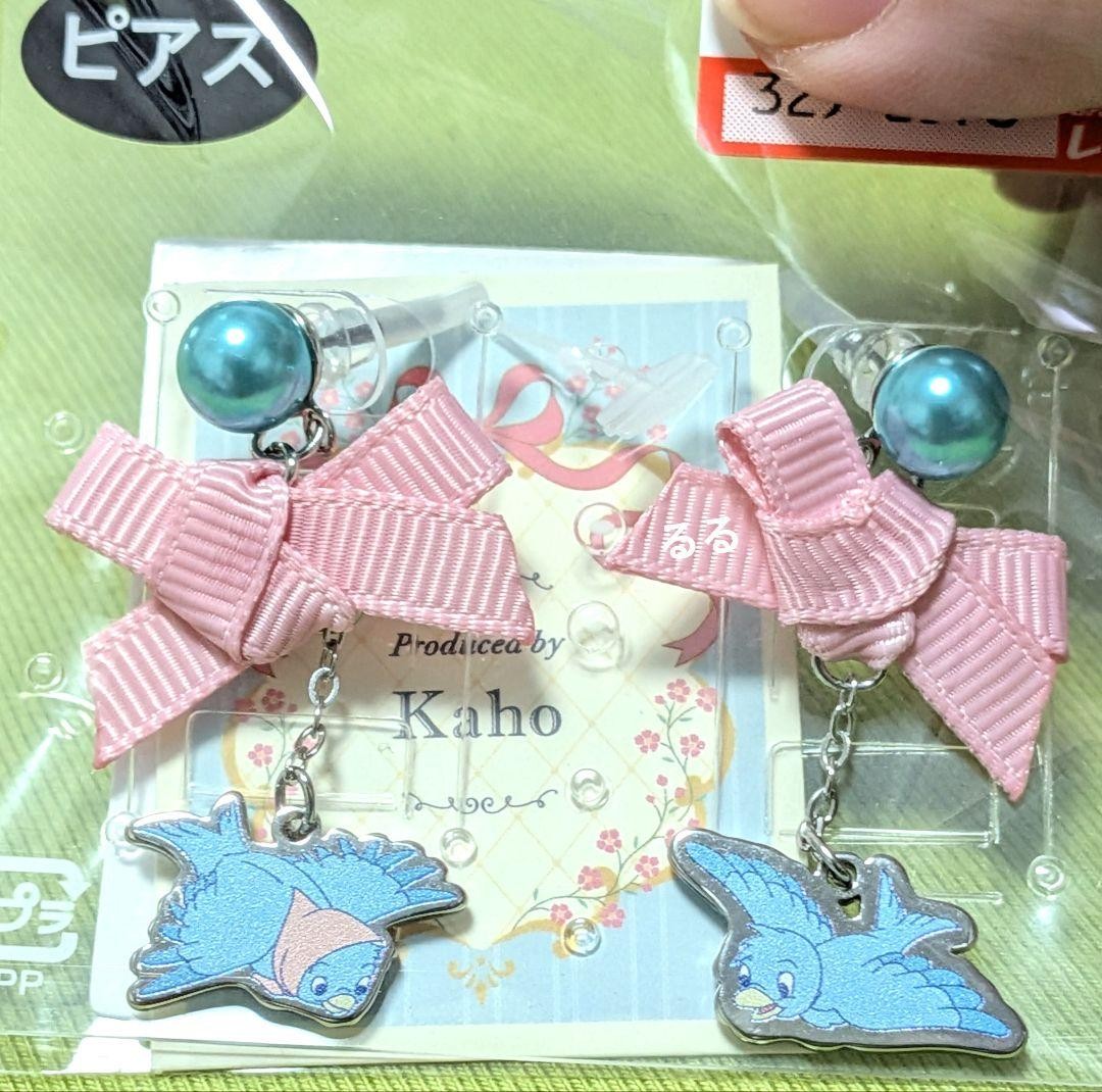 Shimamura Disney Kaho Cinderella Blue Bird Charm Ribbon Earrings