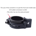 Type: Front Derailleur Conversion Shim Material: Aluminum alloy Color: Black Quantity: 2pcs =1 set Package includes: 2pcs Conversion Shim Function: It can convert the tube in the frame of 28.6 to the diameter of 31.8MM, so that you can use the front dial of 31.8 (The other two models have the same effect, but the specifications are different) Specifications: 28.6 conversion 31.8 28.6 conversion 34.9 31.8 conversion 34.9