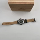 Watch details: Brand: Shinola Collection:Runwell Crystal: Double-domed sapphire Dial Color:Black Type: Argonite 1069 Quartz Water Resistance: 5 ATM Crown Construction: Screw-down Case Material: Stainless Steel Case Diameter:41mm Back:Signature Iconic Caseback Plate with Laser-Etched Serial Number Band Width: 20mm Band Color: Black Thickness: 10.1mm Band Material:Leather Plating:Polished PVD Gold THE ARGONITE 1069 The first movement we learned to build and the one that still exudes an understated power. The high-accuracy quartz movement—hand-assembled in Detroit with Swiss and other imported parts—drives the hours, minutes and sub-second with precision. POLISHED STAINLESS STEEL CASE This polished stainless steel case features a classic pumpkin crown and double-domed sapphire crystal. Sapphire is second only to the diamond in hardness, helping protect the watch from scratches. COLLEGIATE BLUE DIAL The face of fandom, this eye-catching dial pairs collegiate blue with maize details for a look that’s tough to beat. PREMIUM LEATHER STRAP IN NATURAL Smooth and sophisticated, this premium leather strap in natural is the perfect complement to this Runwell. It's also removable, making the timepiece customizable with the purchase of an additional strap. Shinola leather straps are cut and sewn in America. A WOODEN BOX TO TREASURE Built from premium wood, every Shinola watch box is designed to last for generations. Fast shipping via usps, ups, fedex Orders will ship within 1-2 days (excluding weekends and holidays) Please contact me if you have any questions, and I will reply within 24 hours.