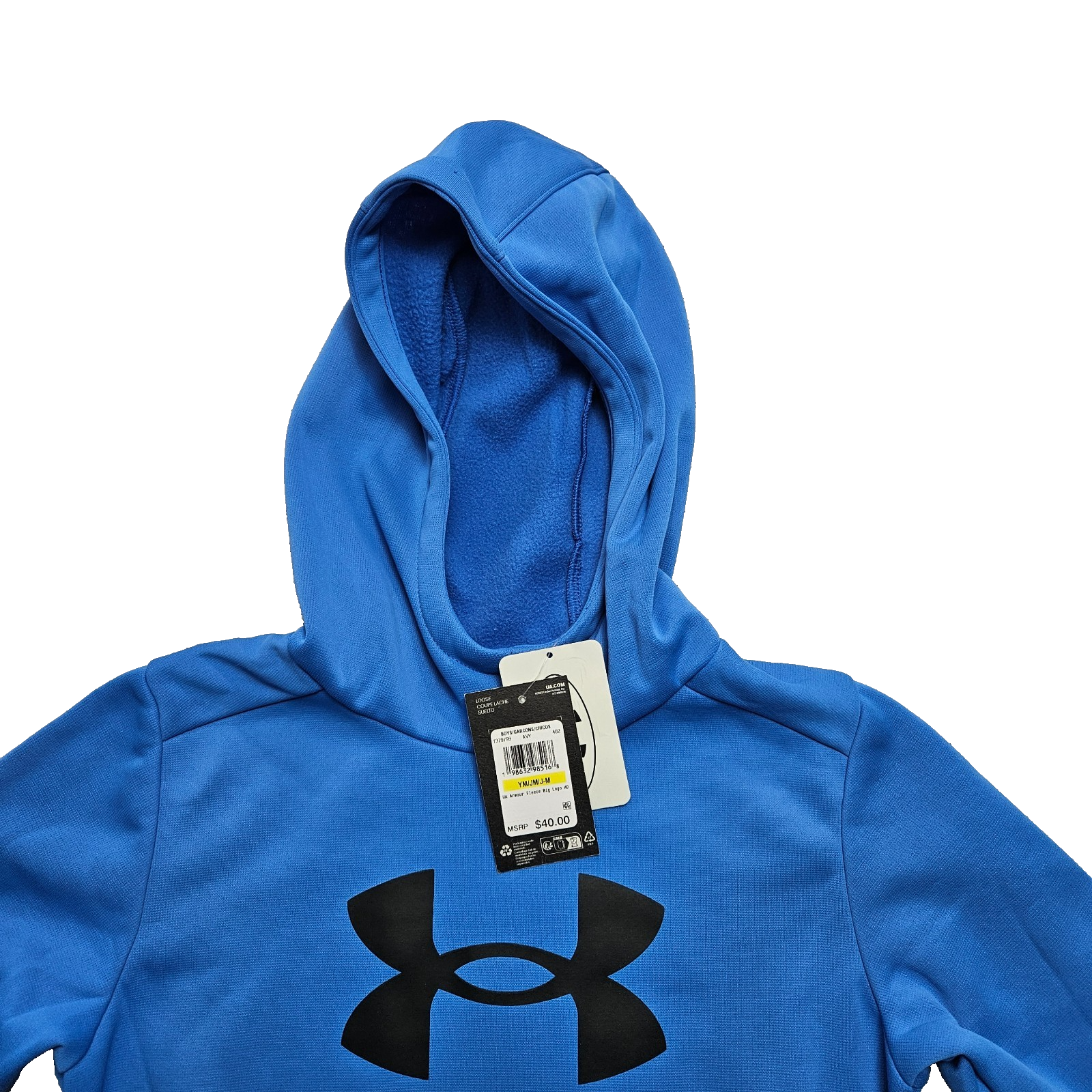 Shirt Hoodie Blue Fleece Big Logo Soft Pocket Boys XL By Under Armour MSRP 40.00