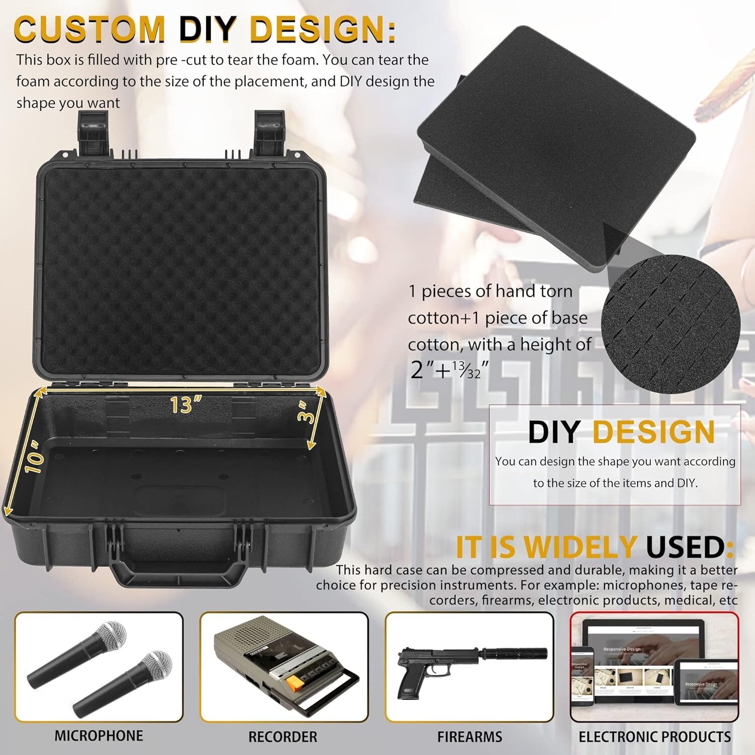 Shockproof & Water-Resistant Hard Case with Customizable Foam Insert - 14x11.5 ‹ › ‹ › ‹ › ‹ › ‹ › ‹ › ‹ › ‹ › ‹ › ‹ › Shockproof & Water-Resistant Hard Case Customizable Foam Insert - Perfect for Cameras, Lenses, and Electronics Product Features: Dimensions: Internal dimensions: L 13" x W 10" x H 3"; External dimensions: L 14" x W 11.5" x H 3.7"; Weight: 2.2 lbs Customized DIY Foam: Pre-cut foam allows you to customize the compartments, ensuring your valuables are snugly encased and protected from shocks and bumps during transit. Material: Crafted from high-quality and environmentally friendly EVA material, offering superior impact resistance and shock absorption compared to traditional hard shells. Easy to Open with Latches Design: Ingeniously designed latches allow for one-handed operation, making it effortless to access your items. For enhanced security, an additional keyhole allows for personal locking. Why Choose Our Hard Case? This protective hard case is expertly designed for securely storing and transporting your valuable equipment—be it cameras, lenses, electronic products, or musical instruments. The customizable foam insert not only cushions your items but also allows for tailored organization. With its shockproof and water-resistant features, rest assured that your belongings are safeguarded against the rigors of travel. Elegance does not have to compromise functionality. Invest in peace of mind and style with our Shockproof & Water-Resistant Hard Case today—your treasures deserve nothing less! Shipping Free & Fast Shipping - We offer free shipping to most of the USA with a normal delivery time of 3-7 days. However, due to the current situation, additional delivery time (up to 3 weeks) may be required for some items. Alternative Carriers - We may use alternative carriers (e.g. USPS, FedEx, UPS, etc.) to ensure your package arrives safely and on time. Due to the use of multiple carriers, we are unable to provide a tracking number automatically. Handling Time - Orders are processed and shipped within 1-2 business days of receiving cleared payment. Shipping Restrictions - Shipping to Alaska, Hawaii, Puerto Rico, Guam, and other US territories may incur shipping charges or delivery restrictions. Please contact us before ordering, or your order can be refunded/cancelled. State Restrictions - There may be restrictions based on your state of purchase. For example, certain items may not be shipped to California due to state regulations. Contact for Tracking Updates - If you require tracking updates or have any concerns about the delivery of your order, please feel free to contact us, and we will be happy to assist you. Return 30-Day Hassle-Free Returns - We want you to be completely satisfied with your purchase. If you are not, you can return the item within 30 days of receiving it for a full refund or exchange. Easy Return Process - To start a return, simply contact us and we will provide you with a prepaid return shipping label and detailed instructions. Restocking Fee - There are no restocking fees for returns. However, the buyer is responsible for return shipping costs if the return is not due to a seller's error. Refund Processing Time - Refunds will be processed within 5 business days of receiving the returned item in its condition. Payment We accept all major credit cards, PayPal, and Apple Pay for your convenience. Your payment information is secure and encrypted to ensure a safe and seamless transaction. Please complete your payment within 3 days of purchase to avoid any delays in shipping. Feedback Your feedback is extremely important to us. We strive to provide the best products and customer service possible. If you are satisfied with your purchase, please take a moment to leave us a positive review. If you have any concerns or issues with your order, please contact us before leaving negative feedback. We are committed to resolving any problems and ensuring your satisfaction. Contact Us If you have any questions or concerns, please feel free to out to our customer support team. You can contact us through the eBay messaging system. We are available Monday to Friday, 9:00 am to 5:00 pm EST, and we will do our best to respond to your inquiry within 24 hours. Buy it now and enjoy a pleasant shopping experience! Model: Camera Hard Case Unit Quantity: 1 Item Weight: 2.2 Item Diameter (Interior): 13 x 10 x 3 To Fit: Camera,Lenses,Electronic Products,Microphone Features: Water Resistant,Shockproof,Water-resistant,Customized DIY Foam Insert,Easy open with latches,One-handed operation,Impact resistance,Extra lock keyhole Type: Hard Case Material: EVA Unit Type: lb Color: Black