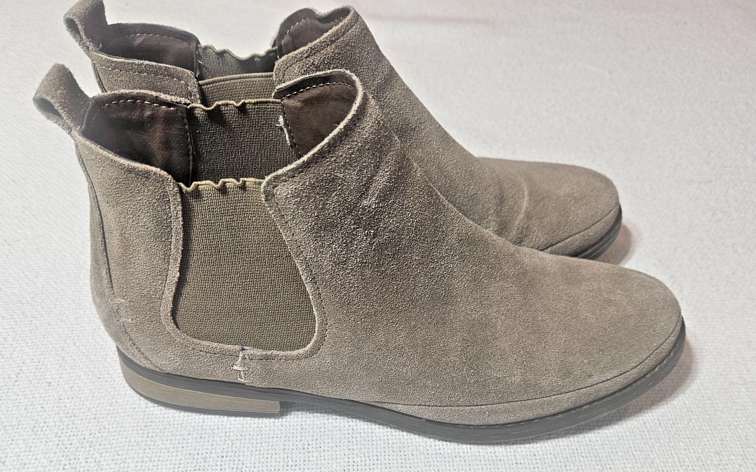 This product is a pair of women's brown suede ankle high boots in size 8. They feature a round toe, pull on closure, and a flat heel. The boots are designed for casual occasions and offer comfort with a leather lining and outsole. The ankle shaft style and block heel provide support and stability, making them suitable for various seasons including winter, summer, fall, and spring. Made by the brand Michael, these boots are a stylish and versatile addition to any wardrobe.