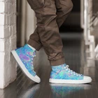 These are UVelsi P 001 High Top sneakers by Bluecoo, a limited edition release for 2024. The shoes feature a multicolor galaxy theme, lace-up closure, cushioned insole, lightweight design, and adjustable fit. They are handmade with a high-top canvas upper, rubber outsole, and are suitable for various activities like basketball, running, and casual wear. Perfect for those looking for a unique and stylish sneaker option. Step up your shoe game with the High Top Canvas Shoes. These handmade, trendy shoes are sure to spice up your outfit. Get yours now! • 100% polyester, canvas upper side • Ethylene-vinyl acetate (EVA) rubber outsole • Breathable lining, soft insole • Faux leather toe cap • Padded collar, lace-up front • Soles and laces in matching colors Size guide preview (Imperial) US Men UK Europe Foot Length Japan Outsole Length 5 5 4 37.5 9 ⅛ 23 10 ¼ 6 6 5 38.5 9 ½ 24 10 ⅝ 7 7 6 40 9 ¾ 25 10 ¾ 8 8 7 41 10 ⅛ 26 11 ⅛ 9 9 8 42.5 10 ½ 27 11 ⅝ 10 10 9 44 10 ¾ 28 12.00 11 11 10 45 11 ¼ 29 12 ⅛ 12 12 11 46.5 11 ¾ 30 12 ¾ 13 13 12 47.5 12 31 12 ¾ 5.5 5.5 4.5 38 9 ¼ 23.5 10 ¼ 6.5 6.5 5.5 39 9 ⅝ 24.5 10 ⅝ 7.5 7.5 6.5 40.5 10.00 25.5 11 ⅛ 8.5 8.5 7.5 42 10 ¼ 26.5 11 ⅜ 9.5 9.5 8.5 43 10 ⅝ 27.5 11 ⅝ 10.5 10.5 9.5 44.5 11.00 28.5 12 ⅛ 11.5 11.5 10.5 46 11 ½ 29.5 12 ½ 12.5 12.5 11.5 47 11 ⅞ 30.5 12 ¾ Size guide preview (Metric) US Men UK Europe Foot Length Japan Outsole Length 5 5 4 37.5 23.2 23 26.2 6 6 5 38.5 24.1 24 27 7 7 6 40 24.8 25 27.3 8 8 7 41 25.7 26 28.3 9 9 8 42.5 26.7 27 29.5 10 10 9 44 27.3 28 30.5 11 11 10 45 28.6 29 30.8 12 12 11 46.5 29.9 30 32.4 13 13 12 47.5 30.6 31 32.4 5.5 5.5 4.5 38 23.5 23.5 26.2 6.5 6.5 5.5 39 24.5 24.5 27 7.5 7.5 6.5 40.5 25.4 25.5 28.3 8.5 8.5 7.5 42 26 26.5 29 9.5 9.5 8.5 43 27 27.5 29.5 10.5 10.5 9.5 44.5 28 28.5 30.8 11.5 11.5 10.5 46 29.2 29.5 31.8 12.5 12.5 11.5 47 30.2 30.5 32.4