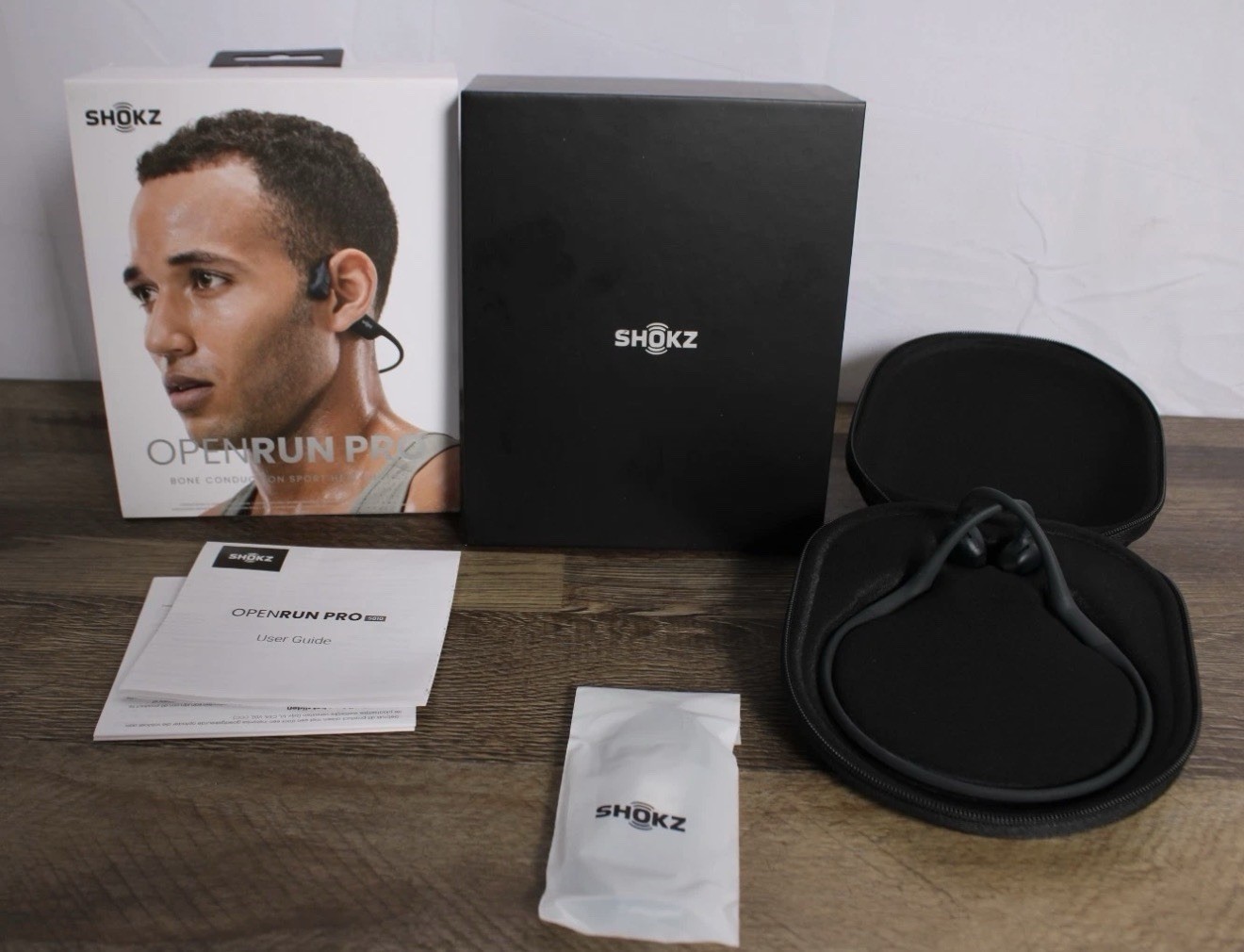 CONDITION: Lightly used. Fully functional and tested. Clean with minimal signs of wear. Includes all original accessories and instructions. Please review all photos for exact condition and contents. ––––––––––––––––––– DESCRIPTION: Shokz OpenRun Pro bone conduction sport headphones in black. Open-ear design allows you to stay aware of surroundings while listening. Features: • Bone conduction technology • Bluetooth wireless connectivity • Up to 10 hours battery life • IP55 water resistant • Quick charge support • Lightweight titanium frame • Comfortable for running, workouts, and daily use Excellent working condition and ready for use. ––––––––––––––––––– WHAT’S INCLUDED: • Shokz OpenRun Pro headphones • Hard zip carrying case • Original retail box and inner box • User manual / instructions • Accessories pouch (as shown) Everything pictured is included. ––––––––––––––––––– SHIPPING: Ships fast and securely.