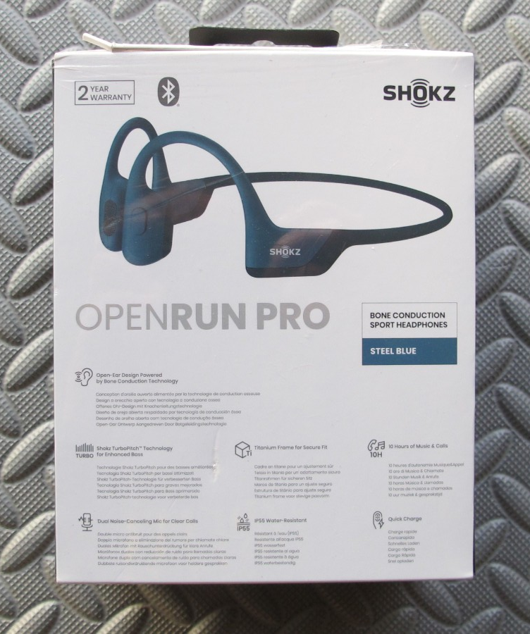 Shokz - OpenRun Pro Premium Bone Conduction Open-Ear Sport Headphones - Steel Blue New, unopened, foil on the box is a little damaged. The OpenRun Pro from Shokz is their premium, wireless, open-ear sport headphone, designed for the ultimate athlete. OpenRun Pro is engineered with 9th generation patented bone conduction technology to deliver superior PremiumPitch 2.0+ audio through your cheekbone, leaving your ears open to environmental surroundings and providing all-day comfort. OpenRun Pro are powered by Shokz TurboPitch Technology, which adds two bass enhancers into the transducers, allowing you to experience every note, beat and chorus of your favorite tunes. With a refined design and compact size, OpenRun Pro sports a lightweight and flexible titanium frame, ensuring a secure fit that will stay in place during any workout, run, or competition.