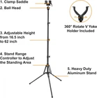 Brand HUNTPAL Color Black Compatible Devices Shotgun, Camera, Rifle Special Feature Foldable Material Aluminum Tripod Head Type Ball Heads Manufacturer HUNTPAL About this item VERSATILE SHOOTING TRIPOD: Loaded with an array of accessories, this tripod goes beyond being a mere rifle/shotgun shooting support – it's an indispensable tool for photography and videography. Tailored for enthusiasts who cherish both firearms and the art of capturing moments, this tripod is meticulously crafted to satisfy your dual interests DUAL-FUNCTION CAPABILITY: Effortlessly transition between shooting and photography modes. Combine the supplied ball head and rifle clamp, or V Yoke Head separately for firearm shooting purposes. When shifting to photography, easily attach the ball head and connect your camera for a smooth and seamless experience HEIGHT ADJUSTMENT & PORTABLE DESIGN: Swiftly adjust the tripod's height between 16.5 inches and 62 inches using multiple knobs, accommodating different user heights and various shooting scenarios. Its portable design ensures easy transportation, enabling you to carry the tripod effortlessly to different locations ROBUST ALUMINUM BUILD: Constructed from durable aluminum alloy, this tripod ensures longevity, providing reliable support for your shooting or filming endeavors SECURE DESIGN: The matte-finished metal surface eliminates glare and offers an anti-slip texture for better grip. With non-slip rubber at the tripod's legs, it stands stable during operation, ensuring stability and security On Sep 24, 2024 at 03:04:28 PDT, seller added the following information: