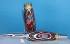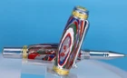 Majestic Rollerball Pen in Chrome/22kt Gold-Plated Finish Large and powerful elegance, a truly extraordinary pen. This magnificent Rollerball Pen will delight your recipient with a handmade pen that will exceed even the most discriminating collector's expectations! The Majestic Pen includes many remarkable features including A chrome-plated clip that includes a sparkling Swarovski clear crystal. All exposed accent rings, bands, and caps include elegant custom hand-carved 3-dimensional designs. Components are cast, polished then plated with elegant 22K gold. Its regal profile is accented with brilliant chrome on all components and has a flawless fit and finish. The rollerball assembly includes a Chrome-plated pen nib with a premium Schmidt steel cartridge refill with a ceramic point; This writing instrument is complimented with superb balance, superior writing characteristics, and an overall stylish, polished & elegant appearance. Features: Free Same Day Shipping Fordite made using powder-coat paint. There are 7 colors in 70 to 90 layers. 22kt Gold Accent Rings Unique Honeycomb barrels Pen Length 6 Inches, Weight 3.2 oz High-End Royal Presentation Style Gift Case as shown 100% Customer Satisfaction Guaranteed Includes a premium Schmidt steel cartridge refill with a ceramic point Check out the other pens like this: Majestic Pen Category Check out the other items in my eBay Store: Gary's Pen Shop