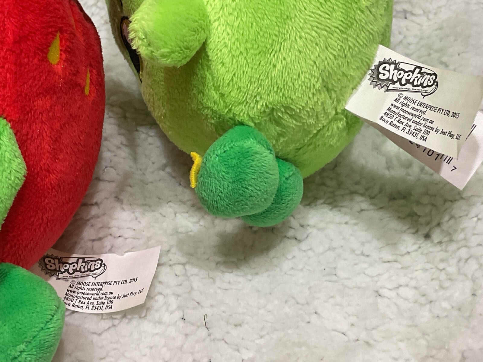 Experience the charm and whimsy of the Shopkins universe with this delightful 8-inch plush toy, featuring the popular Strawberry Kiss and Green Apple Blossom characters from the beloved 2015 Moose collection. Crafted with a soft, plush material, these adorable figures are perfect for snuggling or adding a touch of sweetness to any playroom decor. Whether you're a dedicated fan of the Shopkins franchise or looking for a whimsical gift, these plush toys are sure to bring a smile to anyone's face. With their vibrant colors, playful designs, and high-quality construction, they're built to last and provide endless hours of imaginative play.