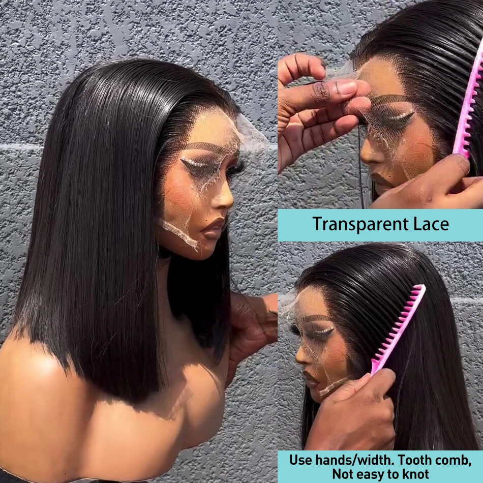 Glueless HD Lace Front Wig Brazilian Human Hair Bob Preplucked Straight Bob