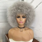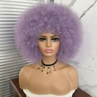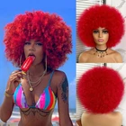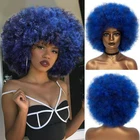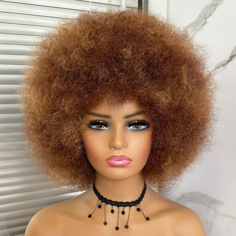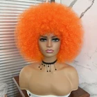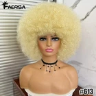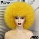 Short Hair Afro Kinky Curly Synthetic Wigs With Bangs Ombre Glueless Cosplay Wig