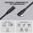 USB C Extension Cable Extend the reach of your existing USB-C cables, which makes it easier to connect devices for greater convenience. It perfectly works for a majority of USB-C compatible devices. Data Syncing USB 3.1 Gen2 10Gbps Support USB-C 3.1 Gen2 Full-Featured Extender Cord Support Max 100W Fast Charging, up to 10Gbps Data Syncing, and 4K@60Hz 3840*2160 video signal transferring for the connection between your device and another monitor or display with USB-C interface. Note: This cable does not work with any Thunderbolt 3 docking/hub/cable. 90 Degrees L Design Right Angle USB C Extension Cable perfect for those tight spaces behind your computer, monitor, or any object near a wall, it's convenient for cables to plug & unplug and also avoid the over-bending of straight cables which affect the device life. Compatible with USB C Laptops MacBook Pro 13 inch 2020/2019/2018/2017/2016 MacBook Air 13 inch 2020/2019/2017 iPad Pro 12.9 inch 5th Generation/4th Generation/3rd Generation iPad Pro 11 inch Dell Inspiron, XPS 15/13,Latitude,HP Spectre etc. Compatible with USB-C Port Phones Samsung Galaxy S21/S20/S20+/S20 Ultra/S10/S10+,Note20/10 Google Pixel 5/4/3 XL OnePlus 9,8T,8/8Pro,7/7Pro etc. Compatible with Other USB-C Port devices USB C Monitor,4K Portable Monitor,Docking Stations,Hard Drives Must Be Read: 1.If you hook up a USB-C 2.0 peripheral( mouse,keyboard,etc.) to this USB-C 3.1 extension cable and it doesn't work as you expected, flip the connector over and try once more. It happens as a result of the compatibility issue of USB-C protocols and you need to connect a USB-C 2.0 peripheral to a USB-C 3.1 port in a specific direction. 2.PLease locate a USB-C or Thunderbolt 3 port on your device that supports video output since not all USB-C ports are able to carry a video signal. NOTE: When your electronic device is connected to a cable that is too long, it will reduce the transmission speed and stability. NOTE: Does not support Carplay, iPhone Wireless Charger, Webcam,Monitoring.dashcam.( This cable not work with any thunderbolt 3 docking/hub/cable, for example : Dell TB15,16 thunderbolt 3 docking station, belkin thunderbolt 3 dock,HP thunderbolt 3 dock etc. ) Extension USB C Connector: Designed to extend the usage distance of the type-c connector. It can acess hard-to-reach place and protect USB Type C female port of your device from frequent plugging and unplugging, protecting nintendo switch console from getting scratched by the dock. 100W Fast Charging and 10Gbps Sync: The cable supports a maximum output of 20V/5A, which can charge a 16-inch MacBook Pro to 39% in 30 minutes. Note: This product is compatible with passive thunderbolt 3, but the transfer speed is limited to Max 10Gbps. Support 4K Video and Audio Transfer: This USB C extender supports video and audio transfer at 4K@60Hz resolution for connecting your MacBook to a display with up to 4X clearer picture quality than 1080P cable. Note: Please make sure both your input laptop and output monitor type c ports support video in and out function(Thunderbolt 3). Universal Compatibility: USB 3.1 Gen 2 Type C extension cable fits most USB-C devices: compatible with Nintendo Switch, M1 Macbook Mac mini, New Macbook Pro, iPad Pro, iMac Pro, Chromebook Pixel, Dell XPS, Nexus 5X 6P, Lumia 950 950XL etc. Note: This USB C Extender does. (This cable not work with any thunderbolt 3 docking/hub/cable.) What You Will Get: 1x USB C Male to Female Extension Cable. We are so confident you'll be satisfied with our high-quality cable. If you have any question, do feel free to contact us directly. We provide forever friendly customer services.