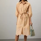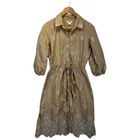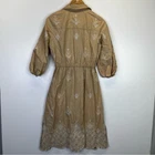 Shoshanna Francoise Button Front dress brown - S Brand: Shoshanna Size: S Type: Dress Color: Brown Closure: Button Front Material: Cotton Condition: Pre-owned. Small patches of miscoloring throughout - I tried my best to photograph - please see photos. Shoshanna Francoise Button Front Dress in Brown. This dress features a flattering V-neckline and 3/4 length sleeves. The front button closure enhances its classic appeal. Perfect for everyday wear, it pairs beautifully with flats or boots for a stylish yet comfortable look. Retail $340 Approximate Measurements Laid Flat: Pit to Pit: 18" Waist: 13.5" Length: 42" Casual, Preppy, Everyday, Minimalist, Chic, Trendy, Layering, Going Out, Closet Staple, Floral, Cottagecore, Coastal, Contemporary, Designer