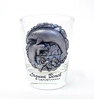 This shot glass is perfect for any beverage, whether you prefer it hot or cold. The glass is made of clear, vintage glass material, and features a beautiful dolphin design. It has a capacity of 1 fl oz and is an original, licensed reproduction from Laguna Beach, California. It's not just a shot glass, it's a collectible item for those who love barware and shot glasses. This shot glass is suitable for one person and could be a great addition to your collection. Buy it now and add the Laguna Beach California Dolphins shot glass to your collection!