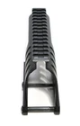 Saddle scope mount for 12GA 870 pump action shotguns. Works with full size scopes and red dot sights with standard Weaver or Picatinny rings Great for slug gun, turkey hunting or tactical shotgun use Easy to install in existing pin ports on the receiver – no gunsmithing or special tools required Solid one piece design of saddle style that straddles both sides of receiver Slotted side walls reduce weight and give attractive and unique style Top Picatinny rail is 6inch long and has 14 ring slots for proper scope or red dot sight placement Machined aluminum alloy body in anodized non-glare matte finish Skeleton slotted side walls to reduce weight One piece saddle design made of solid aluminum alloy Up-to-date top Picatinny rail allows more options of optics placement There is see-thru tunnel underneath top rail that allows use of front bead sight if available Quick and easy to install. No gunsmith needed