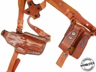 🔫 Premium cowhide 🔫 Horizontal double magazine carrier with secure flaps 🔫 Full grain leather harness with swiveling back plate 🔫 Comfortable wide harness straps 🔫 Accepts magazine-side tie downs/cuff case attachments 🔫 Available in right handed 🔫 Your choice of black or brown This is the top of the line holster from America’s number one distributor of holsters! This holster is handmade from the finest leather. It fits your gun comfortably and its well-made construction is unmatched! Enjoy a great holster for a great price! Shipping on Us!