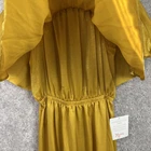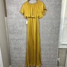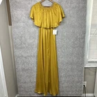 This is a stunning Show Me Your Mumu Satin Hacienda Maxi Dress in size M, perfect for weddings and formal occasions. The dress is sleeveless with a pullover closure and features a ruffle accent. It is made of yellow polyester satin fabric, giving off a chic and elegant vibe, ideal for summer and spring events.