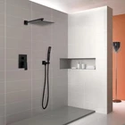 INSTALL WITH CONFIDENCE: The Shower System works with standard 1/2-inch U.S. plumbing connections, so you can rest assured that your contractor or plumber won't refuse to use the shower system. AIR PRESSURIZATION: The 8-inch shower head features innovative air injection technology that mixes water with air to increase water pressure to 100%, simulating natural rainfall for a natural touch of water experience. QUALITY PROMISE: This shower system features all-metal rugged construction. The mixing valve is made of solid brass, which is rust-resistant and long-lasting; the 304 stainless steel rain shower head comes with silicone nozzles that wipe away mineral deposits with a simple swipe of your finger. Matte black exterior: fingerprint resistant and passes salt spray test. The ten-layer matte black exterior provides a sleek, modern look for bathrooms and walk-in showers and ensures corrosion resistance and durability. It matches most bathroom decors.Includes: 10-inch square rain shower head, handheld shower head, 1.5 meter shower hose, shower bracket, water volume control valve, mounting hardware. SATISFACTION GUARANTEE: 10 Years Warranty, Free Warranty on any product quality issue, permanent free replacement. Free warranty for any product quality problem, faucet provides lifetime warranty service, you can install it with confidence.