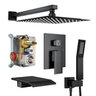 MPN: US15619 Shower Head Type: Rain Shower Finish: Matte Features: High Pressure, Rainfall, Water Conservation Manufacturer Warranty: 5 Years Room: Bathroom Material: Brass, Stainless Steel Shower Head Included: Yes Item Length: 55.0 cm Shipping: Free Shipping Installation: Wall Mounted gtin13: Does not apply Style: Modern Item Height: 7.0 cm Items Included: Mixing Valve Item Weight: 3.3 kg Spray Patterns: Waterfall Number of Shower Heads: 1 Type: Shower Set Shower Head Shape: Square Brand: Hunter Color: Black UPC: Does not apply Shower Faucet: 10'' Item Width: 30.0 cm Number of Spray Patterns: 3