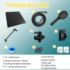 Luxury Bathroom Shower Head Combo: This shower head with handheld kit includes a square shower head, a handheld shower head with 6 settings, an 11-inch extension arm, a 6.6-foot stainless steel shower hose, a brass 3-way diverter, a shower hook, a shower head holder, Teflon tape, a washer, and installation instructions. High Pressure Waterfall Shower Head: The square rain shower head is made of 304# stainless steel, which has the highest level of rust resistance and ensures a long service life. The high-pressure shower head integrates ultra-thin and air jet technology to save water for you. It is optimized to work with any water pressure, and the water flow feels like a thorough and dynamic massage for your skin. This rain shower head can provide you with a hotel-style shower experience. 6-Setting Handheld Shower Head: This shower head has 6 water discharge modes, namely Jet + Pause, Massage, Shower, Shower + Massage, Mixed and Pulse modes, and 7-speed adjustment. This enables it to meet various bathing needs of you and your family. It is ideal for bathing your kids, bathing your pets, and various cleaning applications. Adjustable Brass Extension Arm: The height and angle adjustable shower arm is suitable for any shower head. It is made of solid thick gauge brass with strong bearing capacity to support the heavy-duty high-pressure chrome-plated rain shower head. It is adjustable 180 degrees in both height and angle, allowing you to position the shower head at the best angle and height. Easy to Install: It is compatible with all standard 1/2-inch pipe threads. No need to call a plumber as it can be installed in minutes. Before installation, please read our instructions carefully. If you have any questions, please feel free to contact us. Please note that the square shower head is heavy, and we recommend using a wrench to tighten it for added safety.