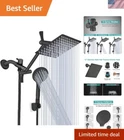 Shower Head, 12ββ High Pressure Rainfall/Handheld Shower Combo with 11'' Extension Arm, 9 Settings, Anti-leak Shower Head with Holder, Height/Angle Adjustable, Matte Black π Amazing Shower Head Combo: It comes 8ββ large square rainfall showerhead, '' chrome face 9 spray settings handheld shower, 5ft stainless steel hose, water flow regulator, 3-way diverter, strong suction cup shower bracket, Teflon tape, washers, installation manual and satisfaction.[Max flow rate: ], [Manufacturer: ], [CEC registration code: SUB99575], [Model: ] π8" stylish Rainfall Shower Head: All-Chrome Finish 304#1 Staimntess Steetfur the highest rust resistance and longevity, comes with a reliable leak-proof connection. Using ultra-thin design and advanced air booster technology to make the water pressure higher, offer a superior rain spray shower experience even at low water flow and pressure. (NOTE: Please put the hose on backward if the shower head handle doesn't fit in the holder!! π9 Settings Handheld Shower Head: Its nozzle adopts Tpr and high-level Abs. Creates a pressure-increasing stream and delivers water at a higher velocity to compensate for low water pressure situations. 9 spray patterns that make a pressure-boosting effect for the ultimate shower experience even at low pressure. It is ideal for bathing kids, washing pets and cleaning applications, etc π11" Adjustable Extension Arm: 11" Adjustable extension shower arm fits any shower head or hand shower. Made from solid and brass. Do not worry about breaking or leaking. Allows you to adjust the showerhead for awesome angle and height. 2-Foot vertical movement range makes it easy to tighten the joint πEasy Installation & satisfaction: No need for any tools. Working with all standard 1/2" pipe threads, easy to install in several minutes. Backed with a 1- satisfaction and friendly tech support to help with any questions or concerns, any problems please do not hesitate to contact me Follow me, Own your luxury rainfall shower head combo 8ββ Large Square Rainfall Showerhead comes with 11β extension arm and Chrome face handheld shower head, It can mix air and water to create natural rain shower massage water, moisturize every inch of your skin and always make you fall in love with the comfort of bathing