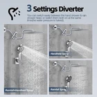 【Sleek and Modern】The Z-shaped pole shower head offers a unique and stylish design that enhances the aesthetic of your bathroom. 304 # stainless steel has high rust resistance and service life. The solid ball nut with 360 degree adjustable rotation angle can realize reliable leak free connection to meet the needs of shower at different angles. 【Long-lasting and Good Experience】Our shower head is crafted with high-quality materials, ensuring durability and long-lasting performance. The stainless steel or brass construction resists rust and corrosion. Just like in a busy household where the shower is used frequently, this product can withstand the test of time without losing its functionality. 【12 Inch extension arm】The Z-shaped pole provides an adjustable height, allowing you to customize the showering experience to your comfort. You can easily raise or lower the shower head to suit your height or specific needs. Keep the shower head away from the wall. Made of solid brass, no need to worry about cracking or leakage. The 180 degree height and angle can be adjusted to meet the shower needs of different positions, bringing you an excellent shower experience. 【Nozzle and Waterproof Hose】Soft silicone nozzles can prevent lime scale build-up for maintenance-free enjoyment, resistant to clogging,easy to, anti-oxidation and corrosion resistant. Unlike other cheap shower heads with hoses,Special woven material is used inside, which is completely waterproof. 【Easy to Install and Accessories】Installation of the Z-shaped pole shower head is straightforward and hassle-free. Please refer to the installation pictures or manuals inside the page. Use all standard 1/2 pipe threads. It can be installed in minutes and requires no handyman. If you have any questions, Please feel free to contact.