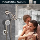 With Upgraded 12" Z-shaped Shower Arm : Optimized the adjustable range to provide you a better waterfall shower experience. Design in Z-shape shower extension arm enhances its bearing capacity, height can be adjusted up and down to adjust the shower head to the optimum height you want, and keeping your shower head is always vertical and will not hit the shower arm,instead of sloping water like ordinary straight shower arms 12’’ Large Rainfall Shower Head : The large waterfall all metal square shower head body is made of premium SUS 304 stainless steel to ensure rust resistance, durability, and long service life. Combined ultra-thin design with air-in technology, the large shower head has 196 silicone nozzles for superior water flow and full body coverage, make sure your body is not left in the cold Size Upgraded Handheld Shower : With a 5-inch panel and 198 nozzles for a wider showering range and powerful water output pressure. It provides 100% more water flow than a regular showerhead, and the larger starry heavens panel is perfect for you enjoy the total shower, get total relaxing With 4-Setting Spray Mode & Built In Tile Power Wash : Comes with 3 spray modes and 1 powerful wash cleaning mode. Different spray modes are suitable for adults, kids and pets. Ensures high pressure water output without irritating your skin, providing an efficient and comfortable care for the whole body. Powerful cleaning mode can quickly rinse large areas and blow away stubborn dirt, making cleaning the bathroom easy and efficient Easy Installation All Brushed Nickel Shower Combo : No tools needed,installs in minutes(You can refer to the installation video which attached in the product page). All brushed nickel design makes it super elegant and complements your bathroom environment. Definitely the perfect housewarming gift for family and friends