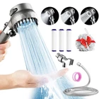 【Practical 3 Spray Modes with Massage Function Detachable Shower Head】The massage shower head with handheld is different from a regular handheld shower head. shower head features three different spray functions: rain mode, mixed mode, and spray mode. With 20 massage strips, make the bath more enjoyable [Filtration Design] Our filtered shower head with upgraded filtration function. The clean cotton filter can effectively remove impurities in the water, such as dirt and heavy metal, the hard water filter shower head protects the and safety of your family's skin& hair. Contains 3 high-quality PP Filters(pre-installed showerhead). Recommend to replace it every 3 months [Wide Application] You can use this shower head with filters for hard water to shampoo your hair, shower, bath your , wash your dog, and even use the filtering shower head to flush the toilet as much as you want [Easy Installation] Package includes a powerful showerhead high pressure, 59inches anti-explosion hose, bracket, 2pcs extra clean cotton filters, PTFE tape, and bath loofah. The universal G1/2” thread fits any standard shower pipe, arm, extender, or filter, without a plumber and connection toolless, detachable components can be removed and cleaned easily