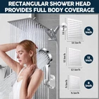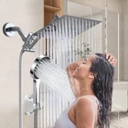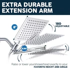 【8 Inch Square Rain Shower】Excellent rain shower system. 304 # stainless steel has high rust resistance and service life. The solid ball nut with 360 degree adjustable rotation angle can realize reliable leak free connection to meet the needs of shower at different angles. 【Free switching mode】Ashwanth shower faucets sets complete is the perfect family showering solution, with ergonomic controls that allow you to change the shower function simply by turning the button. 【11 Inch extension arm】Keep the shower head away from the wall. Made of solid brass, no need to worry about cracking or leakage. The 180 degree height and angle can be adjusted to meet the shower needs of different positions, bringing you an excellent shower experience. 【Nozzle and Waterproof Hose】Soft silicone nozzles can prevent lime scale build-up for maintenance-free enjoyment, resistant to clogging,easy to, anti-oxidation and corrosion resistant. Unlike other cheap shower heads with hoses,Special woven material is used inside, which is completely waterproof. We also provide a built-in gasket in the hose and two extra gaskets to avoid any leakage. 【Easy to Install and Accessories】Please refer to the installation pictures or manuals inside the page. Use all standard 1/2 pipe threads. It can be installed in minutes and requires no handyman. If you have any questions, Please feel free to contac Product Description 360 ° rotatable head 1. Meet your shower needs from different perspectives 2. Men or women of different heights can also be adjusted appropriately 11’’ Extension Shower Head Arm 1.180 degree adjustable:free to choose the best height for shower. 2.Gear Joint : Hand the square rainfall shower head tightly and safety 3.spinning locking collar:Easy to install and will not hart hand 5FT Stainless Steel Hose 1.Lightweight, flexible and no tangle 2.Comes complete with washers and is easy to install with hand tight. 3.The round port is connected to the hand shower, and the hexagonal port is connected to the tee Advantages of silicone nozzle 1.Soft and Flexible: Silicone material makes the nozzles soft and flexible, which can effectively prevent clogging. 2.Durable: It has good durability. Unlike some hard plastic nozzles that may crack or break over time, silicone nozzles can withstand long - term use and the impact of water pressure without getting damaged easily.