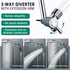 DUAL SHOWER HEAD: The two shower heads are made of durable ABS material, and the large 13-inch rainfall shower head ensures optimal water flow to cover your entire body with ease, giving you a refreshing and soothing bathing experience. 3-WAY SOLID BRASS DIVERTER: The all-metal diverter ensures the durability and longevity of the product, while providing three water dispensing modes. Flexible and convenient control. You can use the rain shower or hand shower alone, or use both at the same time, the water pressure is halved. 13 INCH EXTENSION ARM WITH LOCKING JOINT: Compared with the ordinary extension arm on the market, our extension arm allows you to easily raise or lower the position of the shower head according to your needs, tighten the locking connector after adjusting to the height that suits you, and say goodbye to the trouble of bending over to wash your hair. 4-MODE HANDHELD SHOWER HEAD AND 60-INCH LONG HOSE: Includes 3 modes and a power wash mode, the push button switch mode allows you to effortlessly switch between modes. The wash mode plus the long hose that stretches up to 65 inches allows you to easily reach every corner of your bathroom for convenient and effective toilet and tub cleaning. The suction cup puts the handheld shower head where it fits, and you can stay crouched down to reach the shower wand to clean your baby and pet. EASY INSTALLATION AND THREE-YEAR AFTER-SALES SERVICE: Follow the instructions and you're done in minutes, everything you need is in the package. If you have any questions about this product, you can always send us an email and we will reply within 24 hours.
