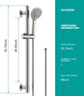 Store New Arrivals Add to Favorite View Feedback Contact Shower Slide Bar Handheld Shower Head with Hose, 5-Function Hand Shower with Wall Mount,Shower Slide Bar,Adjustable Height Shower Head (A-Round, Brushed Nickel) Description Item model number Retro Shower Slide Bar Part Number BNW0018 Style A-round Finish Polished Mounting Type Wall Mount Color Brushed Nickel Material Stainless Steel Country of Origin China Batteries Required? No Number of Handles 1 Item Weight 3.69 pounds Handle Material Stainless Steel Batteries Included? No Shape roundness Installation Method Wall Mounted Finish Type Polished Product Dimensions 27.5 x 5.9 x 5 inches Included Components Shower hose [Flexible Installation] AULEEND slide bar features two adjustable brackets, allowing for easy alignment with existing drill holes or attachment to the grout line without damaging tiles. The adjustable distance range between the two brackets can meet the majority of needs. Please note that the slide bar is not a one-piece structure and requires assembly. [Adjustable Bracket] The adjustable shower bracket allows you to adjust the height and angle of the handheld shower head after installation. This feature is convenient for kids and adults, washing pets, and even showering while seated, providing the perfect shower experience for every family member. [Rustproof and Safe] The slide bar and two brackets are constructed of SUS304 premium grade stainless steel, providing protection against corrosion and rust, ensuring durability and longevity. Stainless steel is durable and easy to clean, making it an ideal choice for the Secure Mount design. [Package Included] The package includes a 5-function handheld showerhead, a 59" (150cm) double interlock spiral hose, sliding bar, a shower holder, a hardware pack, and a detailed installation guide. It is designed for wall mounting installation. Product Description ABOUT US We offer the best prices around on high quality products. Our E-store includes media such as books, movies, music and games while offering electronics, toys, sporting apparel, clothing, tools, general home, garden items and more. SHIPPING We are always working hard to ensure your package arrives as soon as possible. Please understand that some factors like weather, high postal traffic, and the performance of shipping companies are outside of our control. We offer free shipping to the lower 48 states and ship within 2 business days of payment, usually sooner. We do not accept P.O. Boxes. Please provide a physical address. For shipping outside of the continental USA, we only use eBay's Global Shipping Program.The item is shipped to KY and then sent to the rest of the world. International customers are responsible for all duties and taxes. Continue to check out in order to calculate costs for shipping the item to your country. Messages regarding eBay's Global Shipping Program MUST be directed at eBay EXCLUSIVELY. RETURNS We offer a 30-Day Return Policy on items which you are not completely satisfied with. You have the option for a full-refund or an exchange of the item. No returns are available on items shipped outside of the USA. PAYMENT We accept PayPal. CONTACT US This page content is yet to come Please ad us to your favorite seller and visit again later Thank You CUSTOMER SATISFACTION We try our very best to make sure every customer is completely satisfied. If there's a problem, message us! We're happy to help. WE ACCEPT Copyright © 2021 AutoDS. | All Rights Reserved